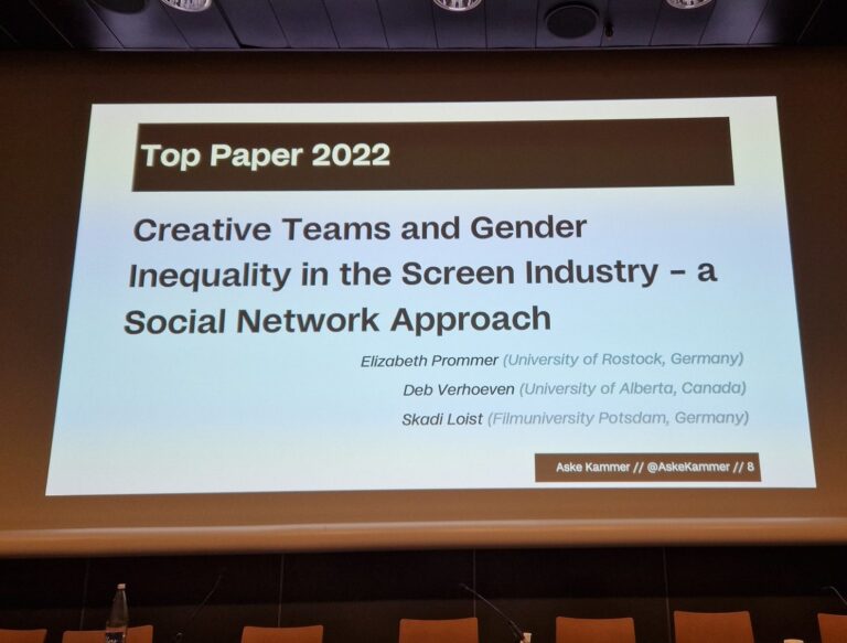 Researchers Elizabeth Prommer, Deb Verhoeven and Skadi Loist won Top Media Industries Paper at the 2022 International Communication Association Conference for their paper “Creative Teams