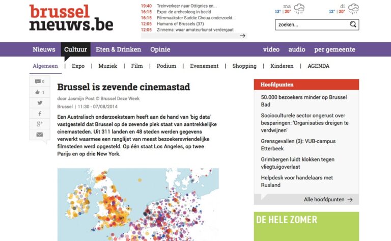 The Kinomatics project has made it into the media this past few weeks. A story in Brussels news outlet Brussel Nieuws has picked up